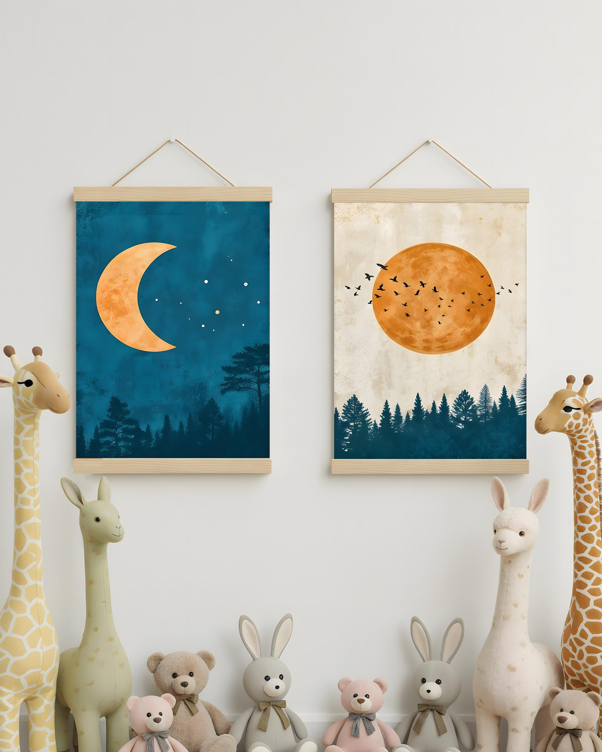 Ormanın Üzerindeki Ay Ve Güneş Soyut Kombin Kanvas Poster (KANPOS0003031-3623)