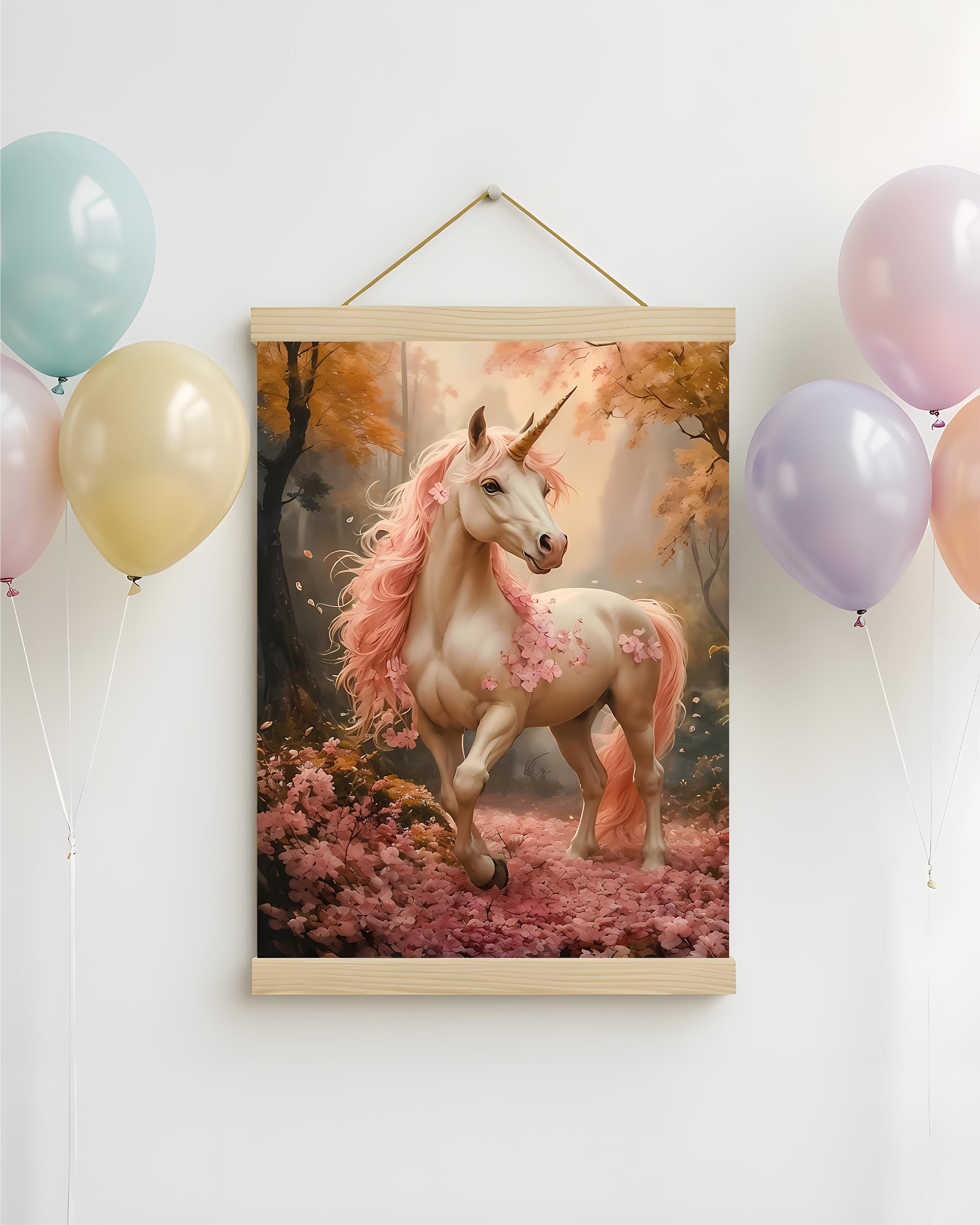 Soyut Kanvas Poster Pembe Çiçekler İçinde Unicorn (KANPOS0007-3623)