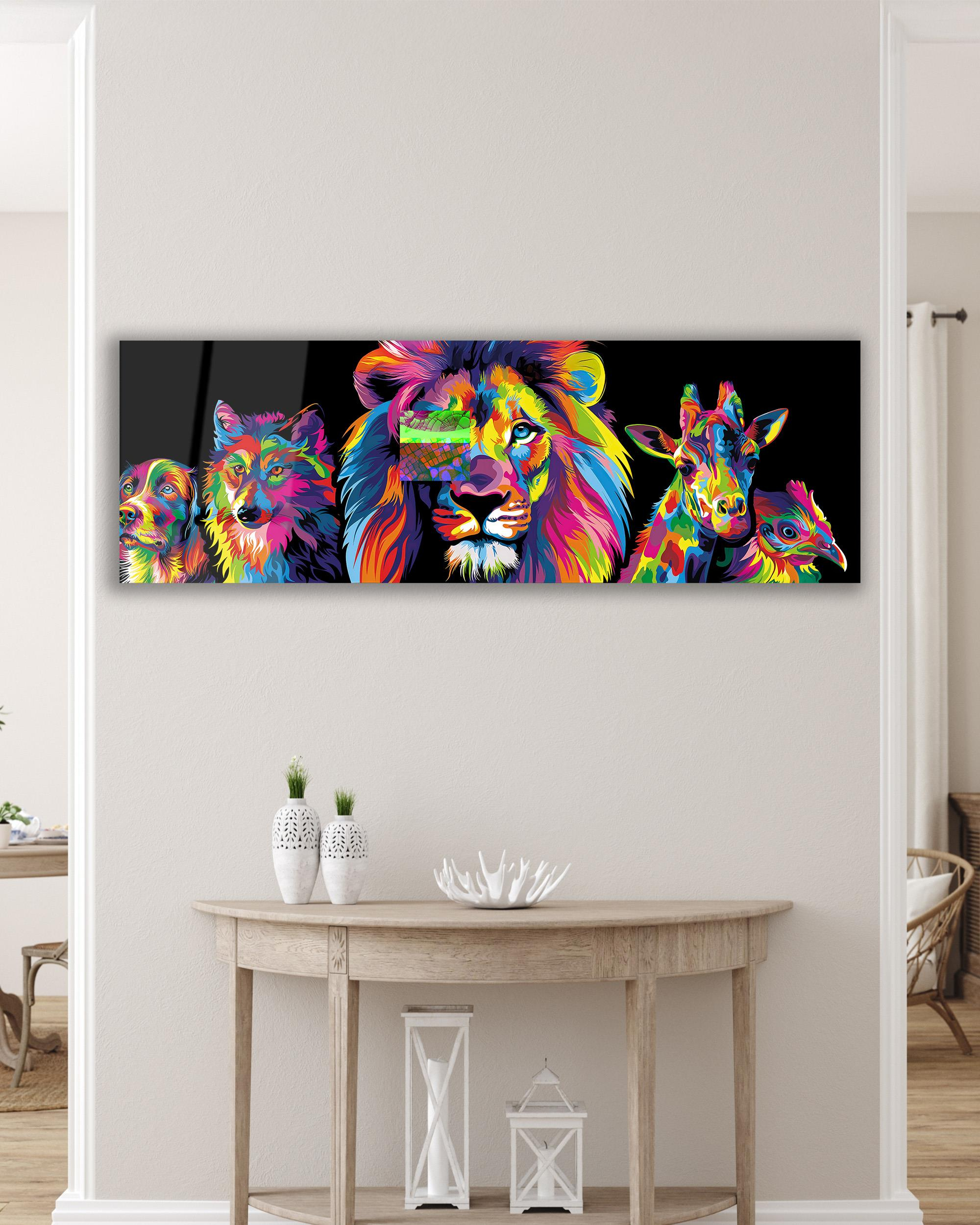 Hayvanlar Figür Cam Tablo Modern Ofis Makam Odası Hediyelik Büyük Tablo Duvar Dekoru