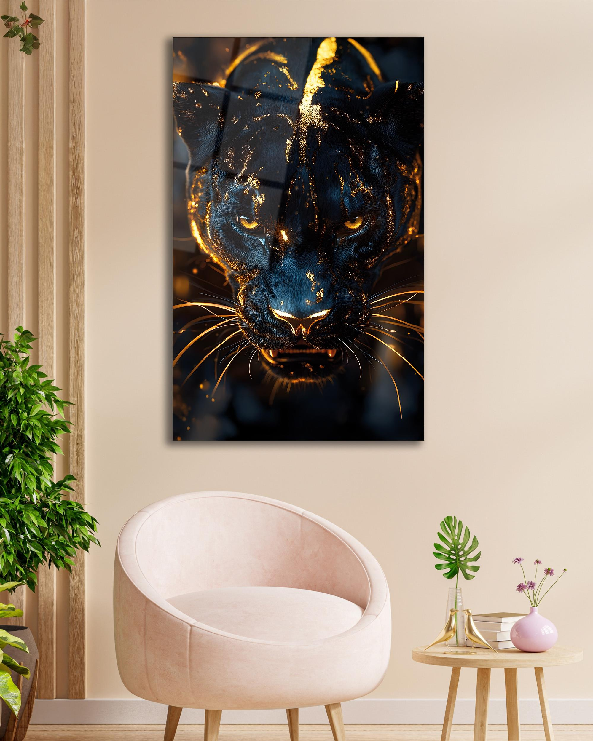 Kaplan Figür Cam Tablo Modern Ofis Makam Odası Hediyelik Büyük Tablo Duvar Dekoru