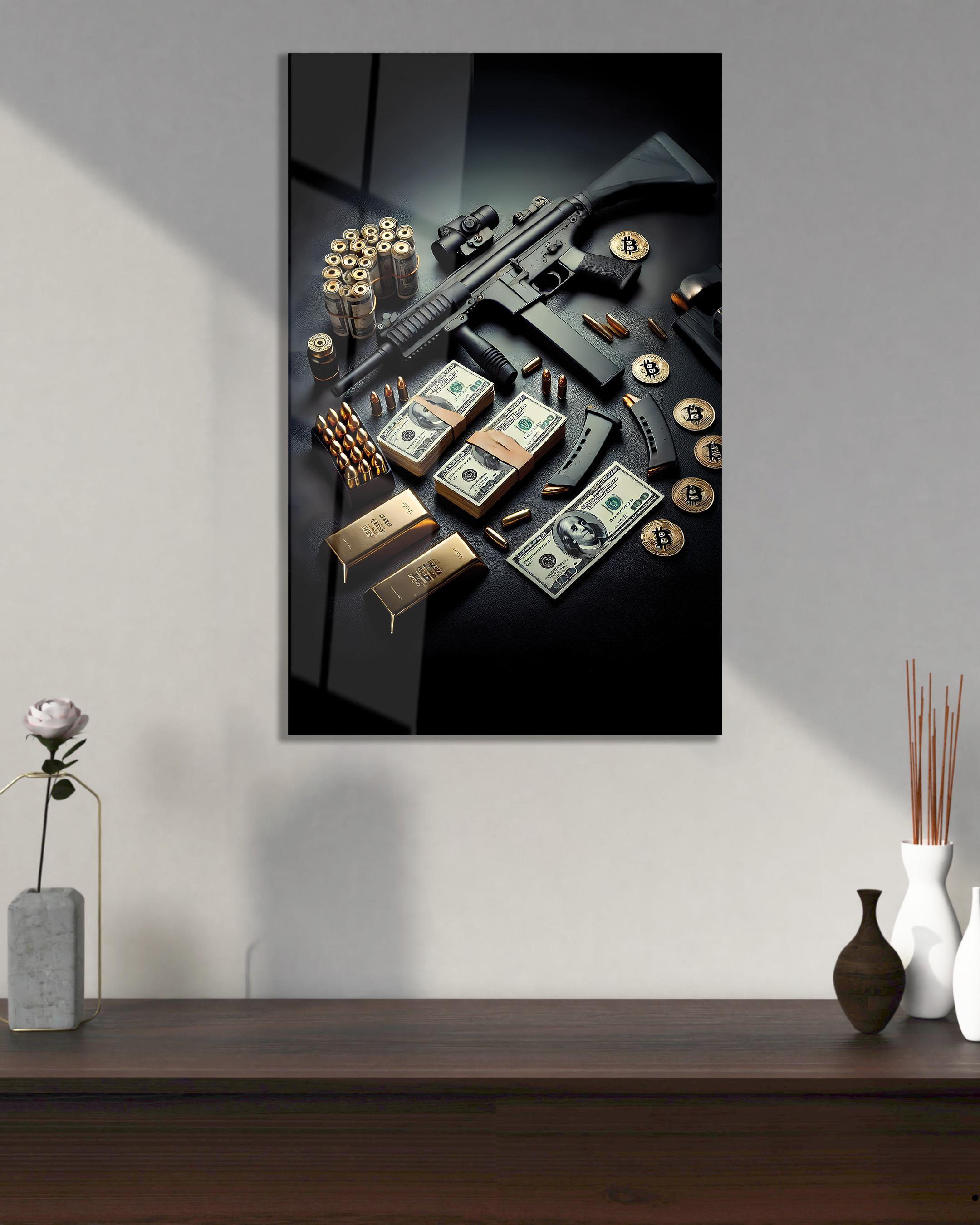 Silah Dolar Cam Tablo Modern Ofis Makam Odası Hediyelik Büyük Tablo Duvar Dekoru