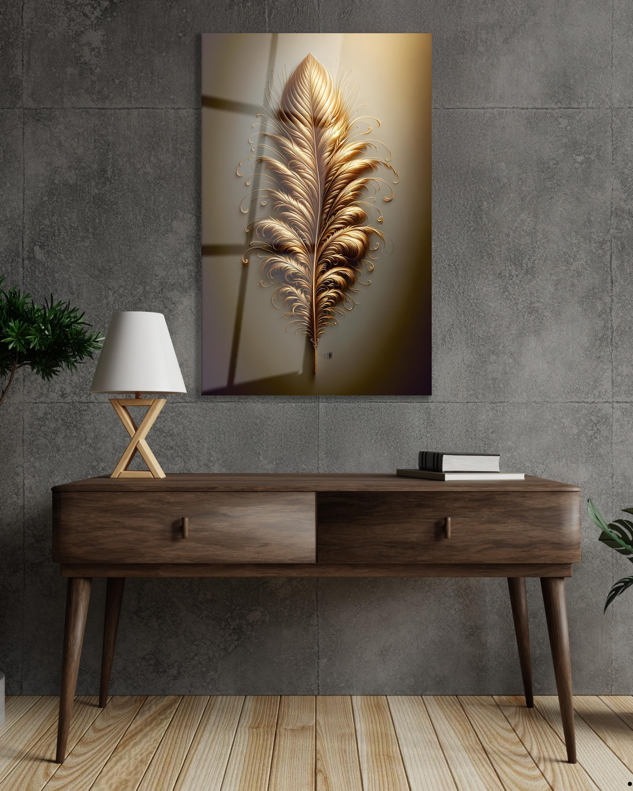 Soyut Gold Tüy Cam Tablo Modern Ofis Makam Odası Hediyelik Büyük Tablo Duvar Dekoru